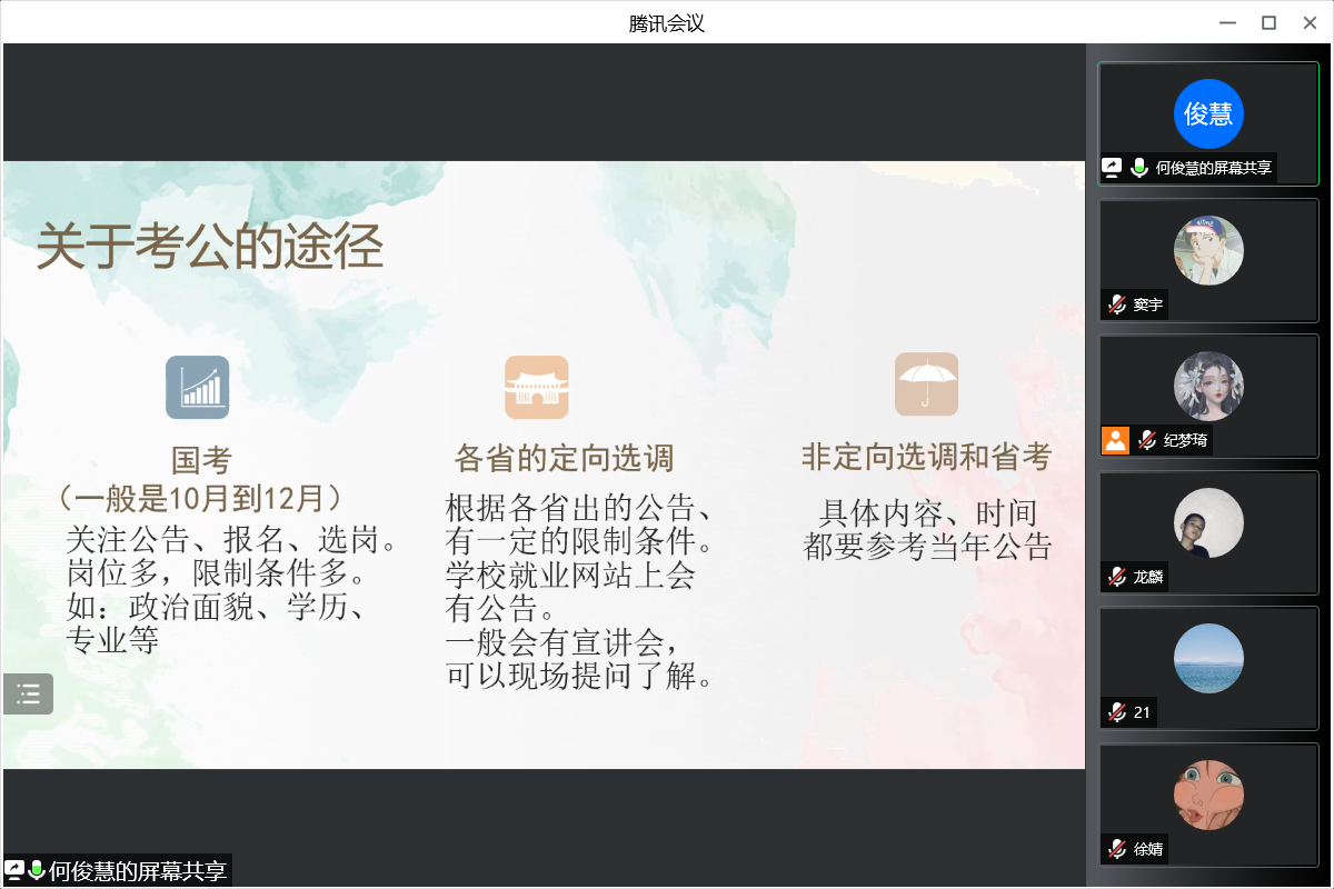 本次就业经验分享会为同学们提供了关于国家公务员考试与求职的针对性指导,有利于其掌握考试方法与技巧、明确自己的职业生涯规划,帮助其坚定就业决心、找准就业方向、实现自我价值。