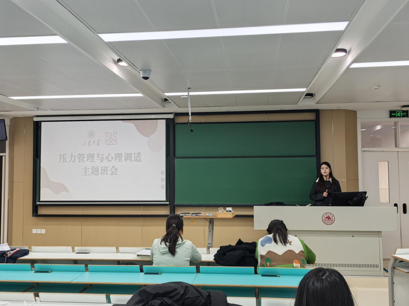 为积极响应学生关切,有效疏导学业压力,引导学生科学规划学习生活。12月18日,248cc永利集团于理综楼309召开以“压力管理与心理调适”为主题的心理健康主题讲座活动。本次讲座由2024级辅导员孙铭孺主讲,全体2024级本科生参加。