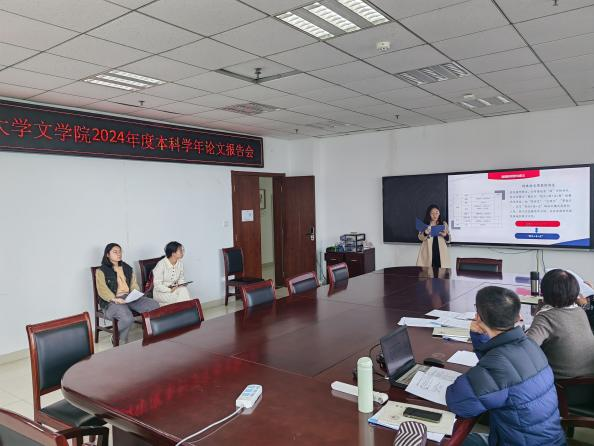 本次学年论文报告会分现当代文学、古代文学、文艺美学、比较文学、汉语言文字学、文献学、古文字强基班共七个方向分场举行。报告会伊始,各会场主持人就此次论文报告会进行简要致辞,并宣读答辩规则。论文答辩分为个人陈述与答辩两个环节,学生首先对论文的选题缘由、框架结构、创新与不足之处等方面进行陈述,随后由评委老师对其提出问题并加以指导,综合学生的能力水平、论文质量和答辩表现赋分。