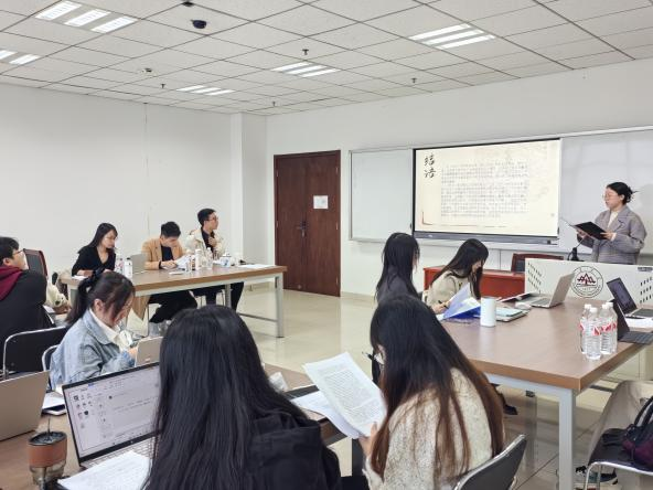 强基班的论文报告会在11月21日下午进行。答辩学生的论文选题范围囊括《左传》《诗经》《后汉书》等古籍,论文内容涉及异文、训诂、考证等方面。答辩学生依次完成陈述后进入答辩环节,老师们进行提问与点评,从用字规范、观点可行性、考证过程等方面为学生们进行指导,提出建设性建议。