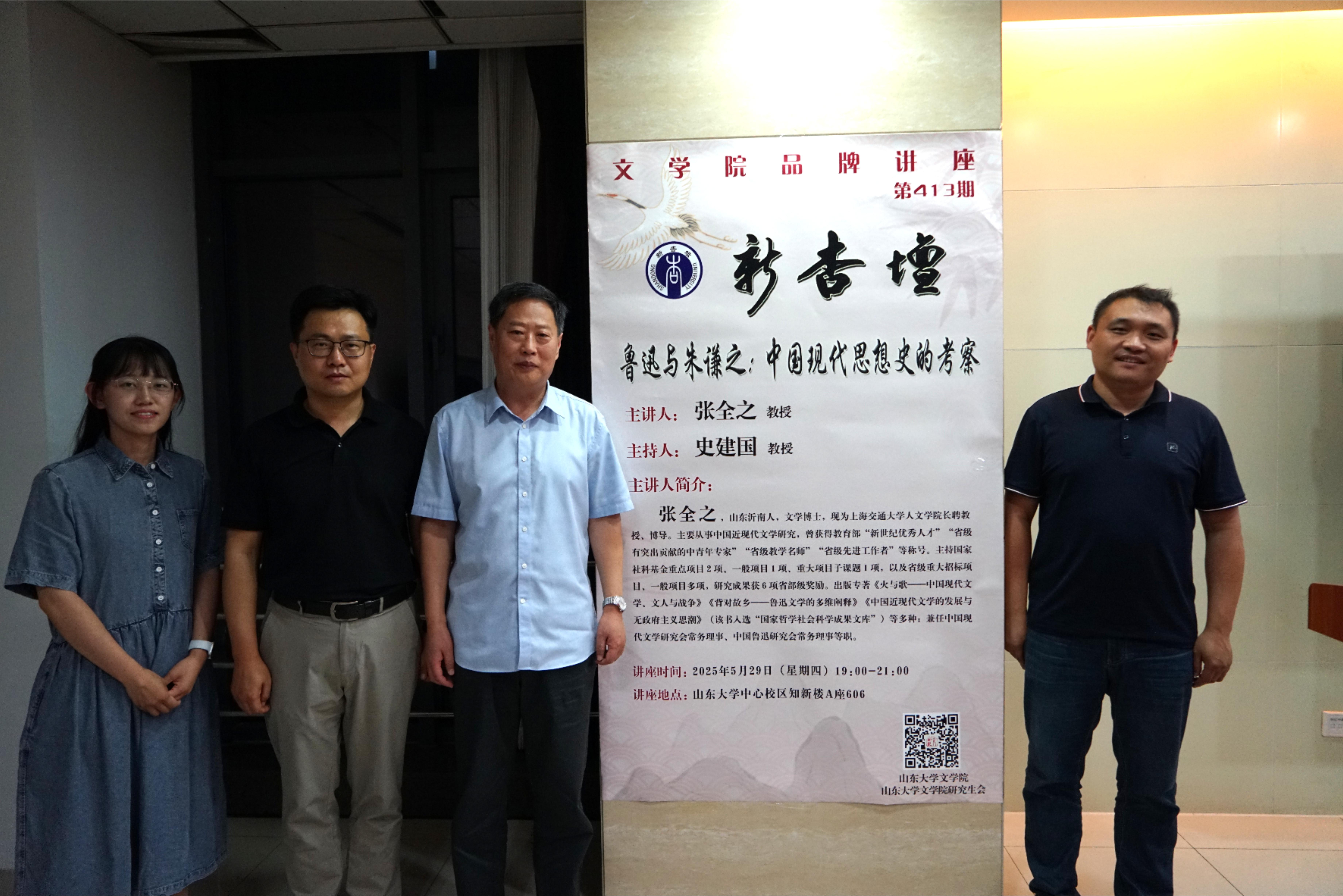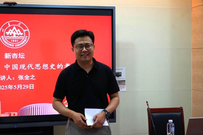 5月29日晚19时,上海交通大学张全之教授做客第413期“新杏坛”,于知新楼A606室作学术讲座,题为“鲁迅与朱谦之:中国现代思想史的考察”。讲座由248cc永利集团史建国教授主持,文学院宫立教授、张钰老师出席,吸引了校内外数十名师生前来聆听。