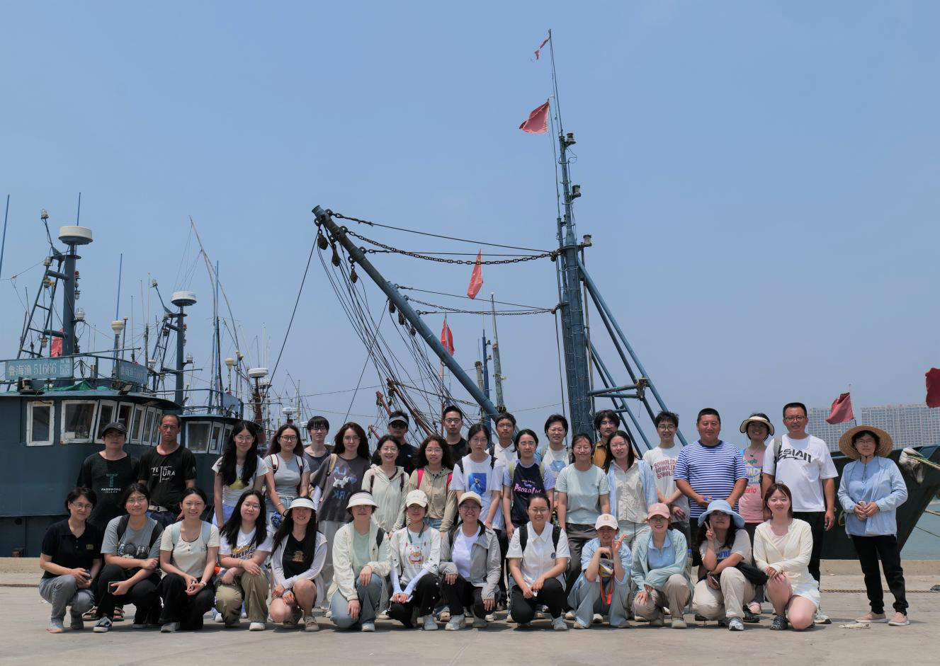 7月10日,调研重点转向当地的渔业词汇调查。团队前往海阳市龙山街道新民村,聚焦干海鲜、活海产、船体部位、捕鱼活动、渔业文化等五类词汇条目,分组采访新民村、徐家铺村以及麻姑岛村的船长和老渔民,并做了详细的记录。随后,同学们又赶往凤城街道海阳港码头,实地采访了年轻船长,深入了解了海阳捕捞业的历史和现代渔业经济的发展。同学们在记录方言文化、收获大量第一手渔业词汇材料的同时,也追踪到其中承载的渔业文化和历史,收获很大。