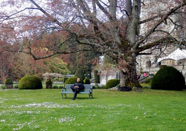我在维多利亚只是一个匆匆的过客,但这里舒适宜居的气候和天然秀丽的风光必将使我终生难忘。现今国内空气污染十分严重,这里的碧海蓝天真会令你恍然如梦,羡慕嫉妒。每年的四月到六月,更是这座小城令人陶醉的季节。翠嫩的绿叶在阳光下舒展,绚烂的鲜花传送着阵阵清香,小鹿在草地上悠然徜徉,鸟儿在树林间婉转清歌。我想,用“家家花圃,处处园林”来描绘她再合适不过。人们生活的节奏缓慢,没有大都市的喧嚣和浓厚的商业气息。在维多利亚市中心、两条主干道Dauglas St.和Blanshard St.的交汇处,树立着一位著名造型艺术家设计的标牌,上面用大写的英文字刻着: