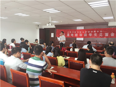 On the afternoon of September 24, the meeting between the tutors and students of 2014th Chinese base class at Literature and Journalism School (LJS) was held in A916, Zhixin Building. Secretary of LJS party committee Wang Desheng attended the meeting and delivered a brief speech.The meeting was presided by deputy dean of LJS Li Jianfeng, and related tutors of LJS and 2014th Chinese base class students attended the activity.