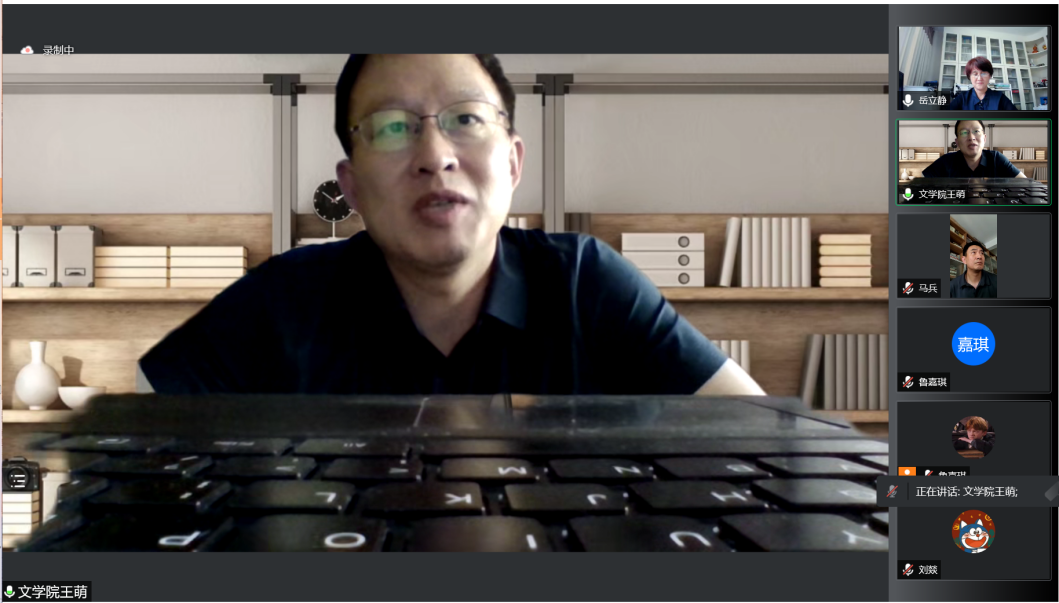 最后,张燕芬老师从理论和教学实践两个方面向助教同学们传授了普通话声母在线教学的经验与方法,以视频、图文结合等方式再现普通话声母的发音部位和发音方法。答疑环节,同学们积极提出自己的疑惑,请教声母教学方法,张燕芬老师和梁昌维老师耐心细致地解答了同学们的疑问,并和同学们探讨提升教学课件质量和教学效果的方法。会议在老师和同学们的热烈交流中圆满结束。