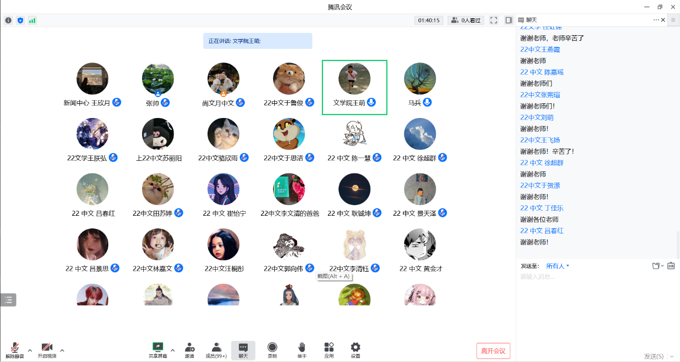 最后,王萌在总结发言中表示,学院教师将牢记“立德树人”使命,秉持“有教无类”的教育理念,以过硬的专业素养担承“培养立大志、明大德、成大才、担大任的时代新人”的责任,同时也祝愿同学们在248cc永利集团得更加充实和广阔的人生体验,成为有情怀,有道义,有追求,有担当的山大中文人。