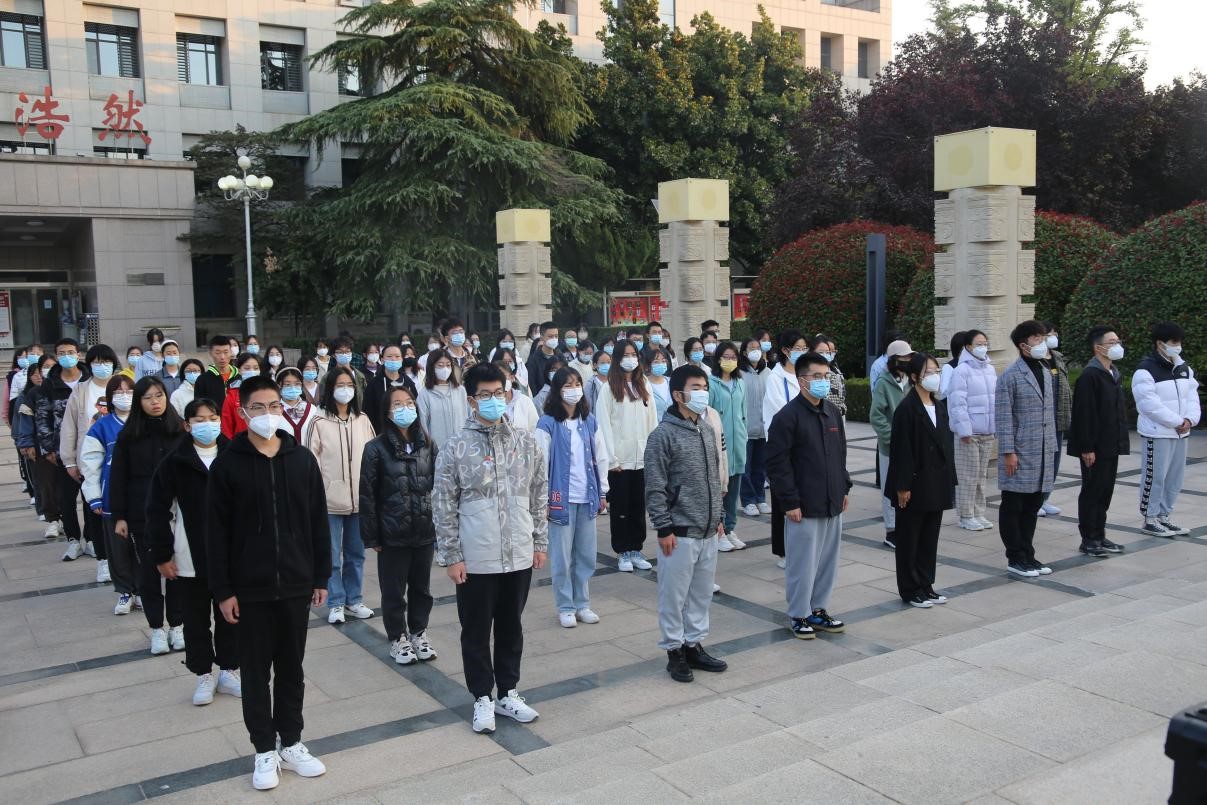 活动伊始,全体同学整装肃立。秋日晴空下,山东大学国旗护卫队的同学们身姿如松、步伐整齐、口号响亮,以庄重严肃的姿态将国旗护送至主席台前。伴随着振奋人心的国歌声,五星红旗冉冉升起,全体同学以激昂的精神和饱满的热情唱响国歌。