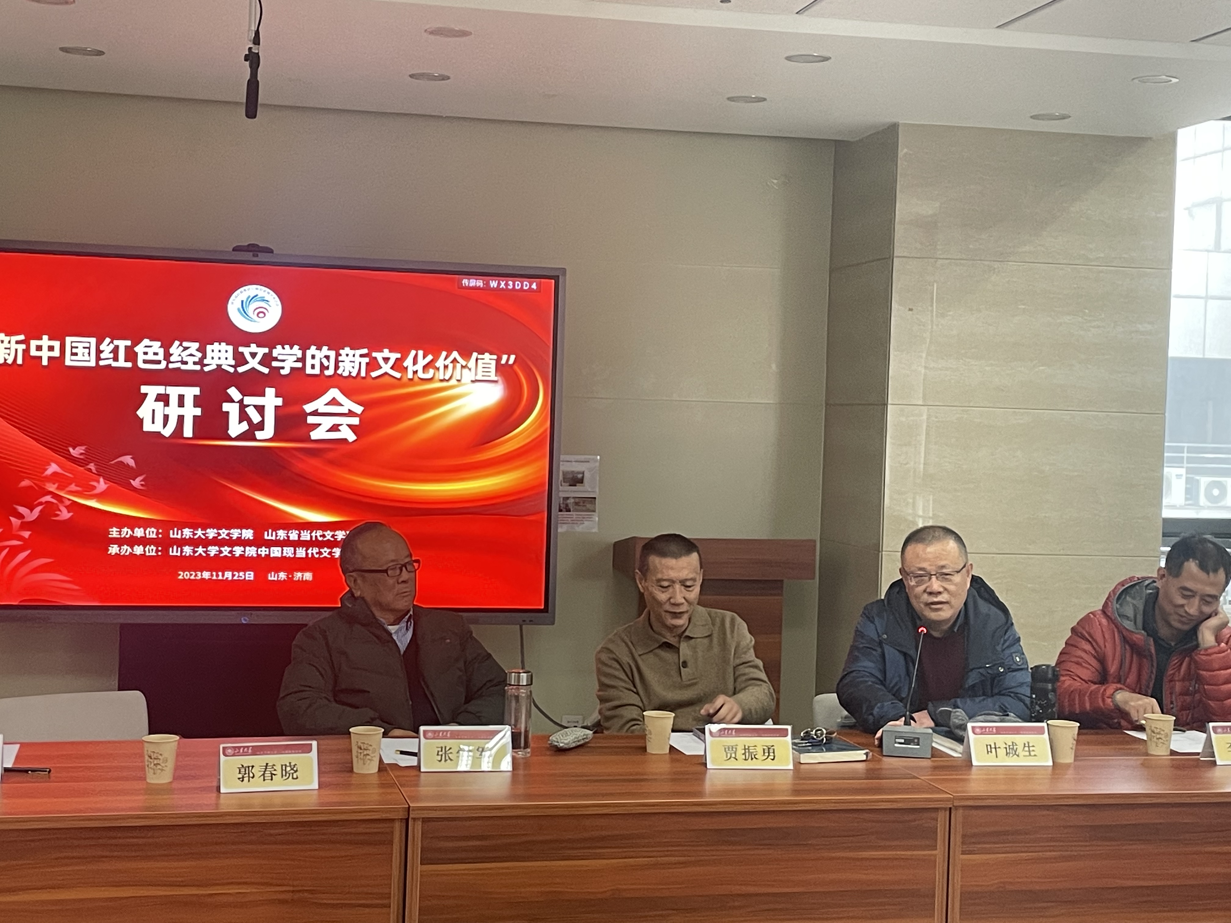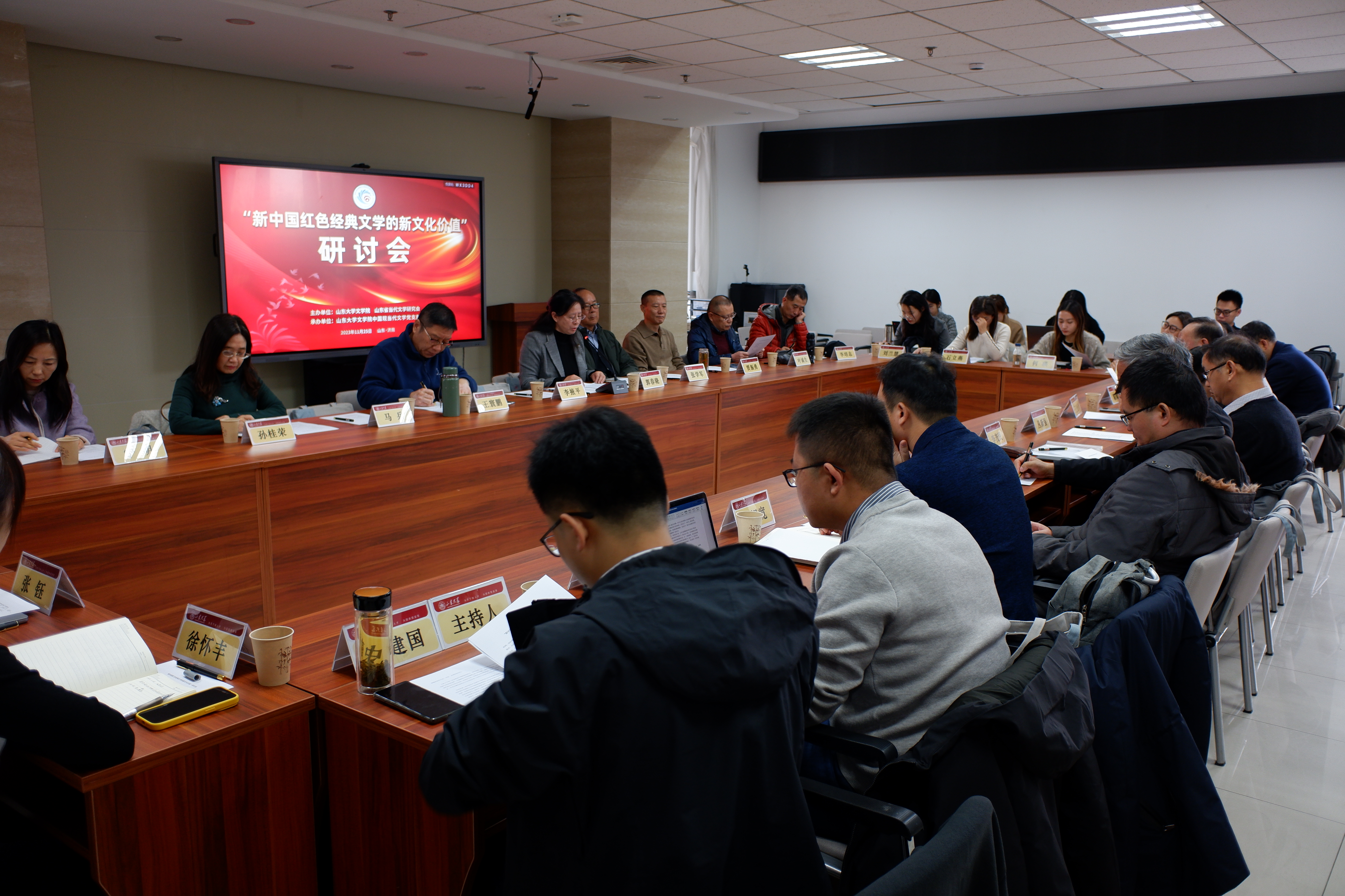 2023年11月25日,“新中国红色经典文学的新文化价值”研讨会在山东大学中心校区知新楼A座606会议室顺利召开,来自山东大学、山东师范大学、滨州学院、山东理工大学、山东青年政治学院、山东警察学院、山东省作家协会、山东大学出版社、《大众日报》等多家高校和文化单位的近50位师生进行了学术研讨,会议由248cc永利集团教授、山东省当代文学研究会秘书长史建国主持。