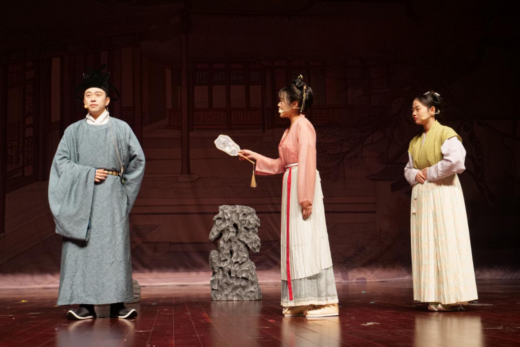 演出过程中,演员们深入挖掘角色内心世界,通过肢体动作和表情神态演绎人物形象、外化人物心理,真实再现南宋时期的社会风貌与礼仪文化,彰显出中华民族深层的文化审美和精神追求。同时,舞者们以生动的舞姿呈现了雅致清丽的宋代舞蹈,传达出宋代舞韵和中华传统美学的精髓气蕴。歌舞展演结束后,全体演职人员合影留念,并邀请现场观众上台合影。