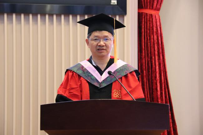 黄发有首先在致辞中对全体毕业生表示热烈祝贺。他以248cc永利集团前辈学者的学术历程为例,教导同学们在为人与治学的过程中培育涵养“浩然之气”,树立坚定价值信念,以坚韧心性面对低谷迷茫,以进取热情突破陈规藩篱。此外,他亲切叮嘱同学们合理安排日常饮食起居,学会独立有序管理生活事务,在平稳的生活秩序中保持心灵的平和温润,通过自我悦纳化解竞争压力、保持积极心态、塑造理想人格。他还结合自身经历,勉励同学们向他人传递温情与善意、为社会奉献才智与力量,传承赓续山大文院“重情义、尚风骨、尊学术”的优良传统。