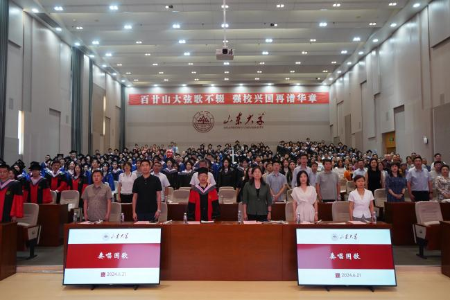 最后,全体师生一同唱响山东大学校歌。本次毕业典礼暨学位授予仪式圆满落幕。