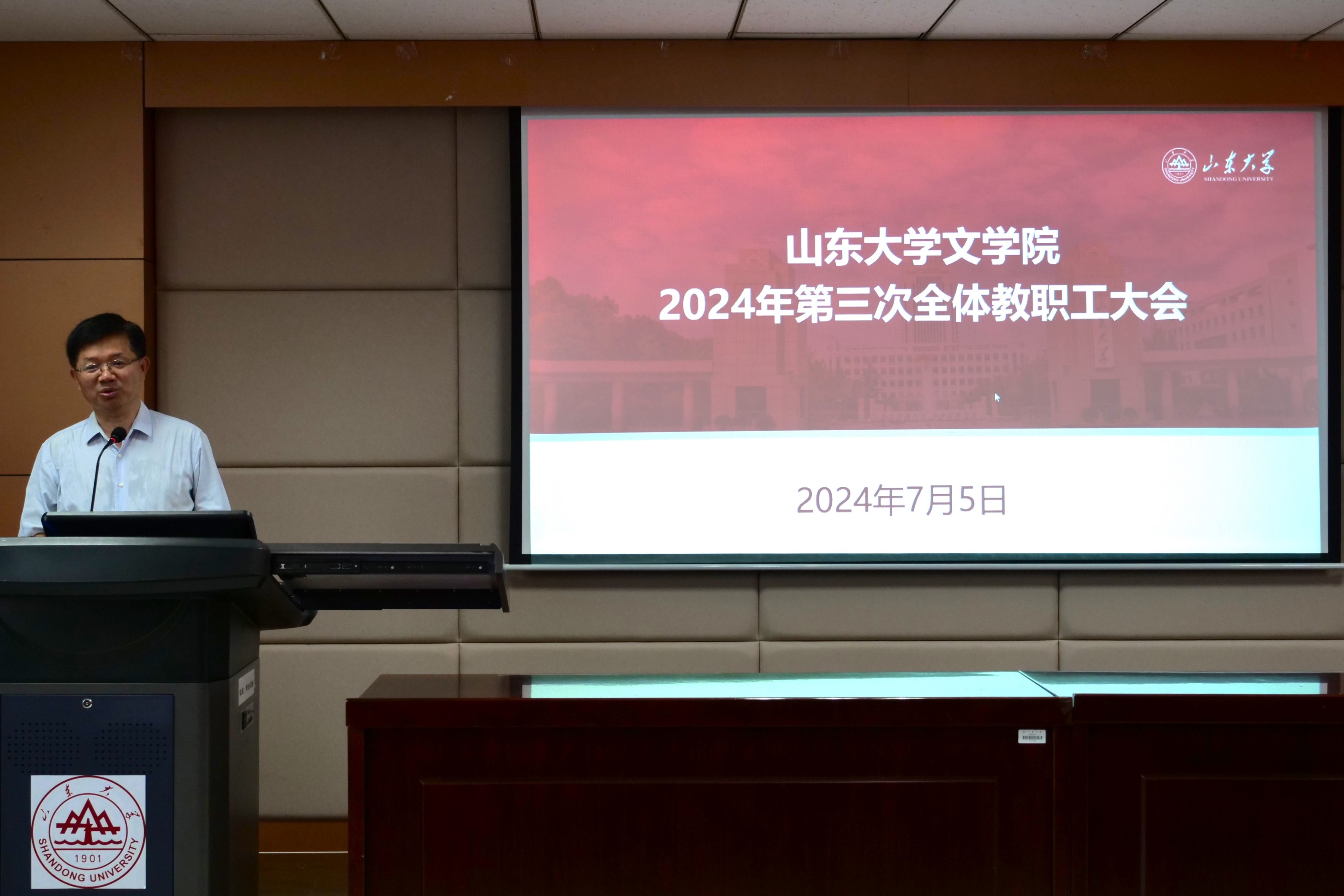 7月5日下午,248cc永利集团于知新楼A620召开2024年第三次全体教职工大会。本次会议由院党委书记郭春晓主持,院长黄发有,常务副院长马兵,院党委副书记王萌、杨俊娇,副院长王辉,副处级组织员沈文以及全体教职工参加会议。