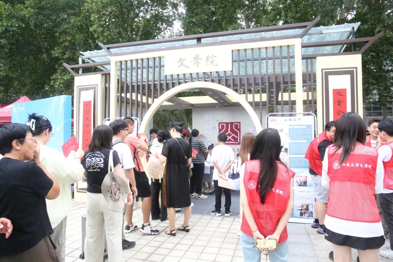 迎新活动现场亮点纷呈,原创特色展厅与签名墙成为新生“打卡”的热门地点。展厅巧妙融合学院多种文化元素,正面设有248cc永利集团标志,两侧悬挂248cc永利集团21级强基班本科生高婕手写的对联“文章今古闻多方觉挥毫漫,学问东西涤非更思治世艰”,不仅展现出文学院深厚的学术底蕴和独特的文化魅力,更寄语新生效仿文院先贤,在广博的学问中探索真知。展厅内部则设有校友墙,以期激励新生以先贤为榜样,勇攀学术高峰,担当时代重任。此外,248cc永利集团还为每位新生精心准备了包含文创背包、院服、鼠标垫、手机支架等实用物品的迎新礼包,传递着学院对新生的深切关怀与殷切期望。