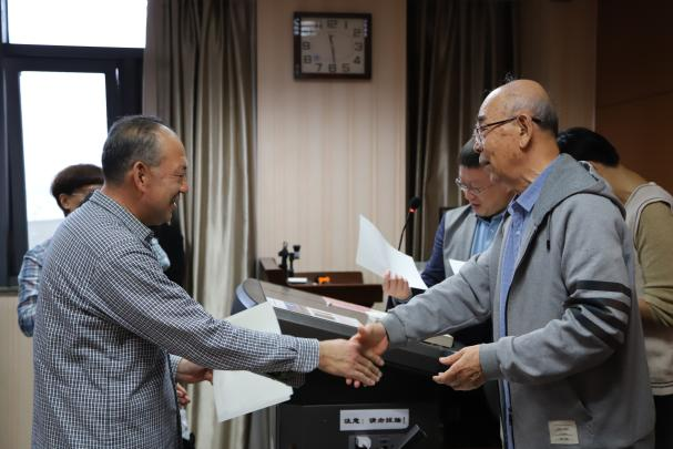 会上,徐超、马瑞芳、王培元三位老教授分别讲话。他们回忆旧年趣闻轶事、感慨师生相聚不易,并对校友在不同领域取得的优秀成绩表示了肯定。他们勉励各位校友不忘初心、牢记使命,发扬山大精神、赓续文脉风骨,为院校发展与社会进步贡献力量。发言结束后,徐超向校友赠送花笺,表达美好祝福。各位校友排队领取赠礼,现场气氛热烈活跃。
