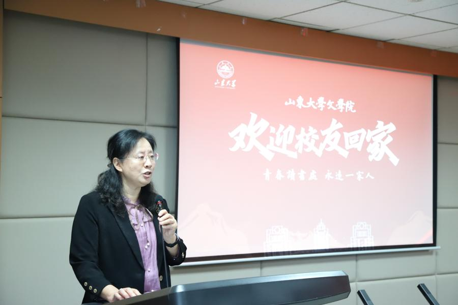 会议伊始,郭春晓代表学院首先对到场的全体校友表示热烈欢迎与热情问候。她表示,1980级校友在各领域都做出了突出的贡献,学院为此感到骄傲和自豪。她向校友们详细介绍了学院近年来的发展情况与学科建设成果,并对校友们长期对学院的关心支持表示衷心感谢。最后,郭春晓希望校友们持续保持联系、不断增进情谊,互融互促、精诚团结,共建、共享美好山大、美好文院。