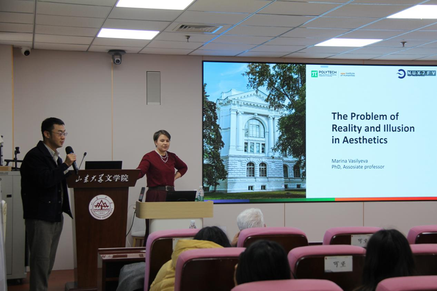 2025年11月20日下午,“当代美学前沿:东方与西方”国际学术研习营迎来第十一场重磅讲座。俄罗斯圣彼得堡彼得大帝理工大学社会科学研究院玛丽娜·瓦西里耶娃教授在知新楼A620教室,以“现实与幻象:美学范畴的再审视”为题做学术讲座。讲座由文艺美学研究中心曹成竹副教授主持。巴西米纳斯吉拉斯联邦大学哲学系教授罗德里戈·杜阿特,美国著名艺术史论学家、湖北大学访问学者、武汉纺织大学特聘教授大卫·布鲁贝克,德国卡塞尔大学艺术史与美学系王卓斐副教授,北京大学艺术学院白龙教授,248cc永利集团副院长杨建刚教授共同与会,现场吸引了来自全国多所高校的硕博研究生参与。