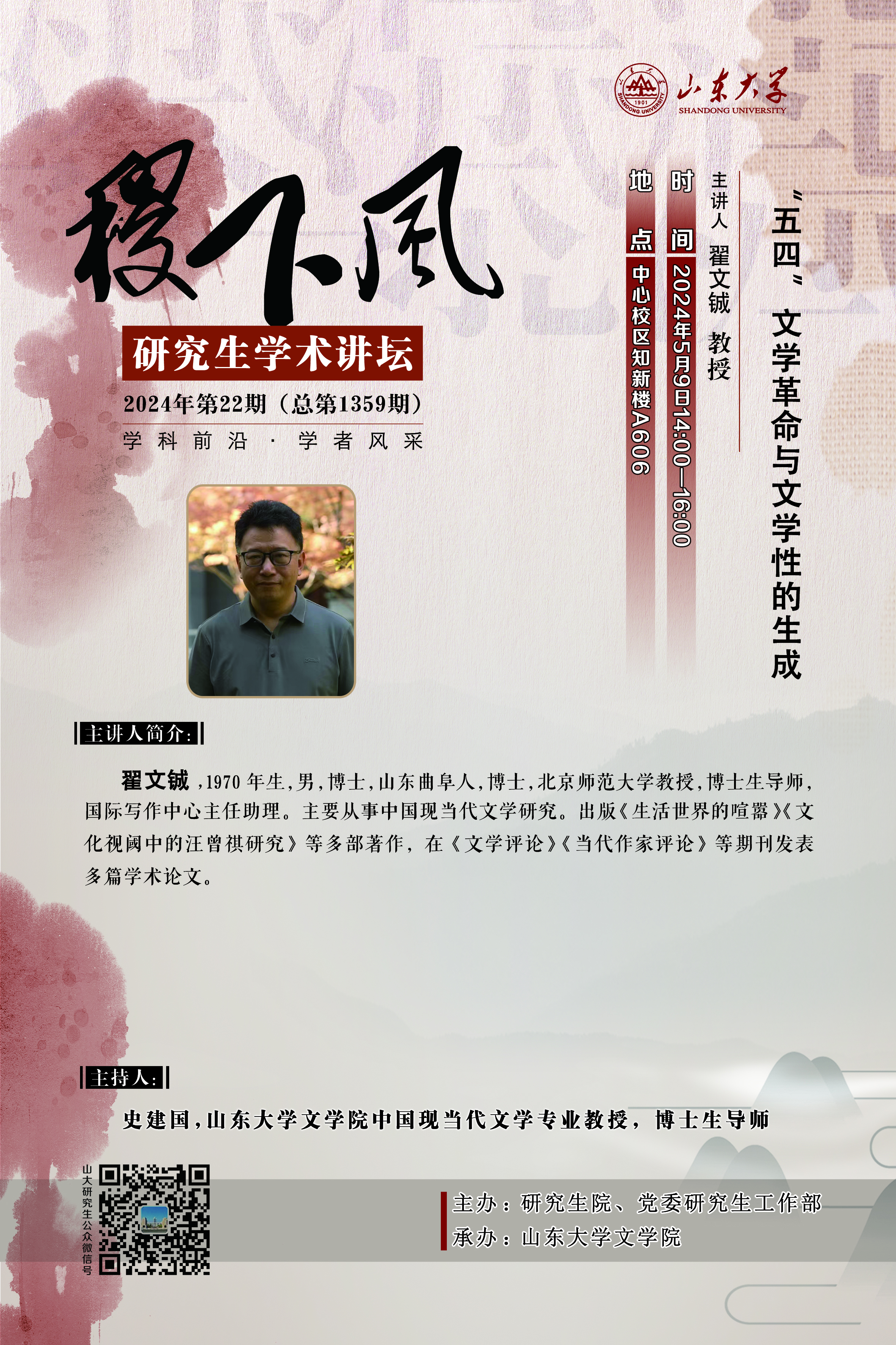 翟文铖,1970年生,男,博士,山东曲阜人,博士,北京师范大学教授,博士生导师,国际写作中心主任助理。主要从事中国现当代文学研究。出版《生活世界的喧嚣》《文化视阈中的汪曾祺研究》等多部著作,在《文学评论》《当代作家评论》等期刊发表多篇学术论文。