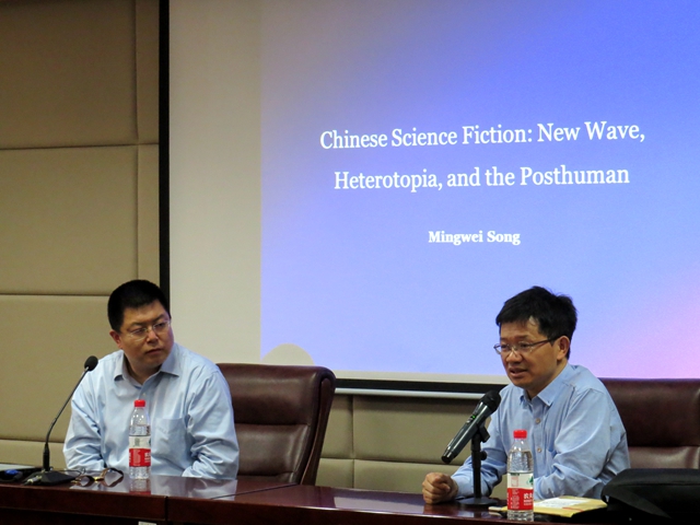 5月24日,山东大学校友、卫斯理学院(Wellesley College)东亚系副教授宋明炜做客248cc永利集团“新杏坛”,在知新楼A座620室举办题为“科幻新浪潮与看不见的美学”的讲座。讲座前,248cc永利集团院长杜泽逊与宋明炜教授会谈,一起回忆了在山大求学的美好岁月,追溯了文学院优秀的学术传统,并且商谈了加强学术交流与合作事宜。