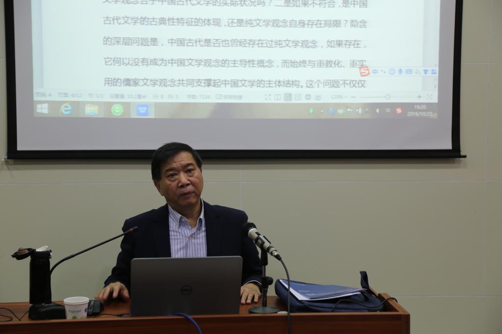 10月25日晚7点,首都师范大学文学院左东岭教授做客248cc永利集团“新杏坛”,在知新楼A606举办了题为“中国古代文学的原发性问题研究”的讲座。讲座由文学院孙学堂教授主持,杜泽逊院长、李飞副教授等248cc永利集团师生共同聆听了讲座。孙学堂在讲座开始前寄语现场同学认真思考,积极提问。