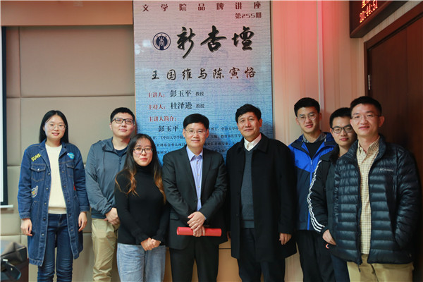 11月8日晚6:30,中山大学彭玉平教授做客山东大学文学院“新杏坛”,在知新楼A620举办了题为“王国维与陈寅恪”的讲座。讲座由文学院杜泽逊院长主持,文学院众多师生共同聆听了本场讲座。杜泽逊在讲座开始前对彭玉平进行了简明扼要的介绍,并代表文学院师生对彭玉平的到来表示热烈欢迎。