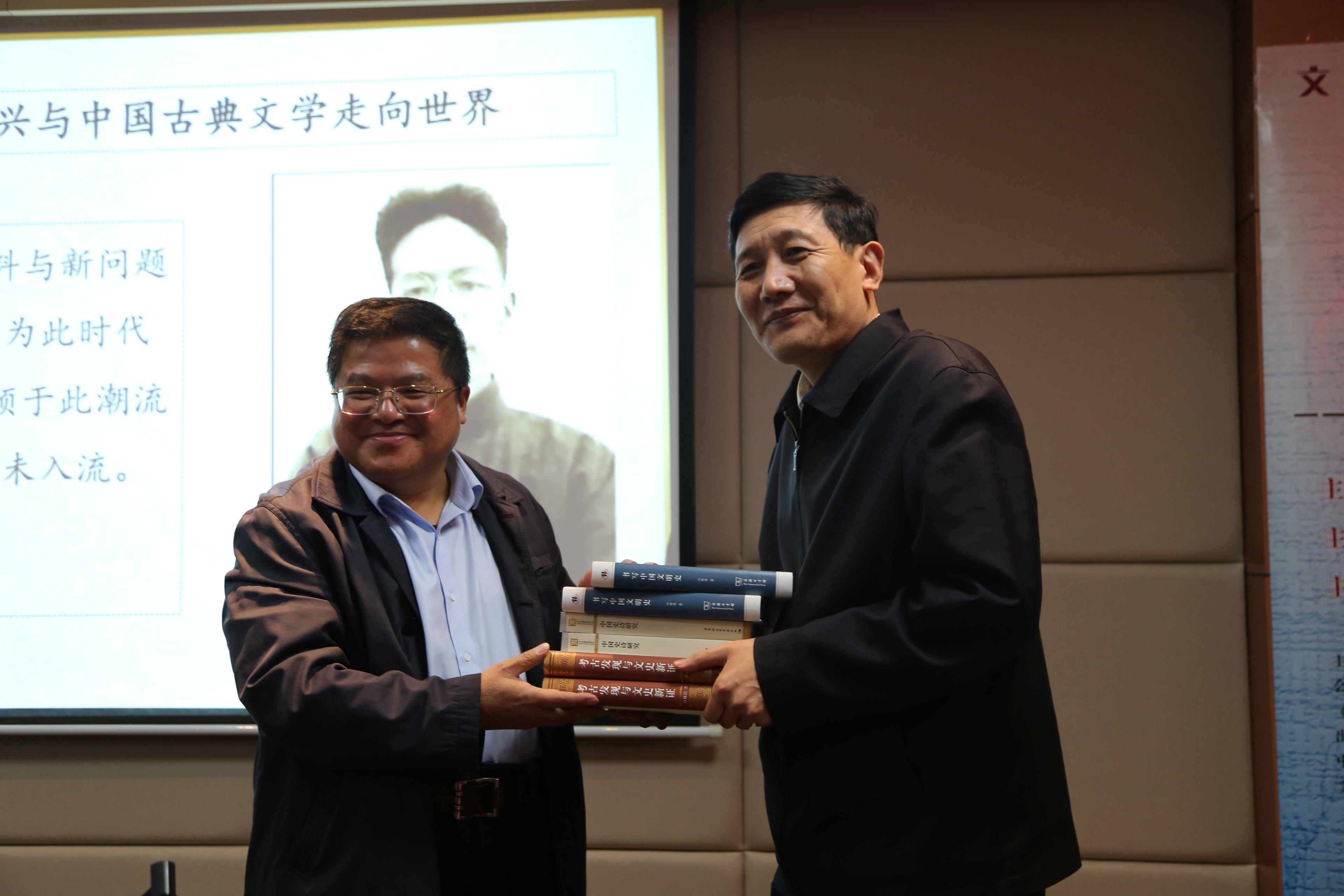 讲座结束后,江教授将自己近期出版的《考古发现与文史新政》(中华书局出版)、《书写中国文明史》(商务印书社出版)、《中国史诗研究》(中国社会科学出版社出版)三种书各两套赠与文学院图书资料室。248cc永利集团院长杜泽逊院长接受捐书并致谢江林昌教授。