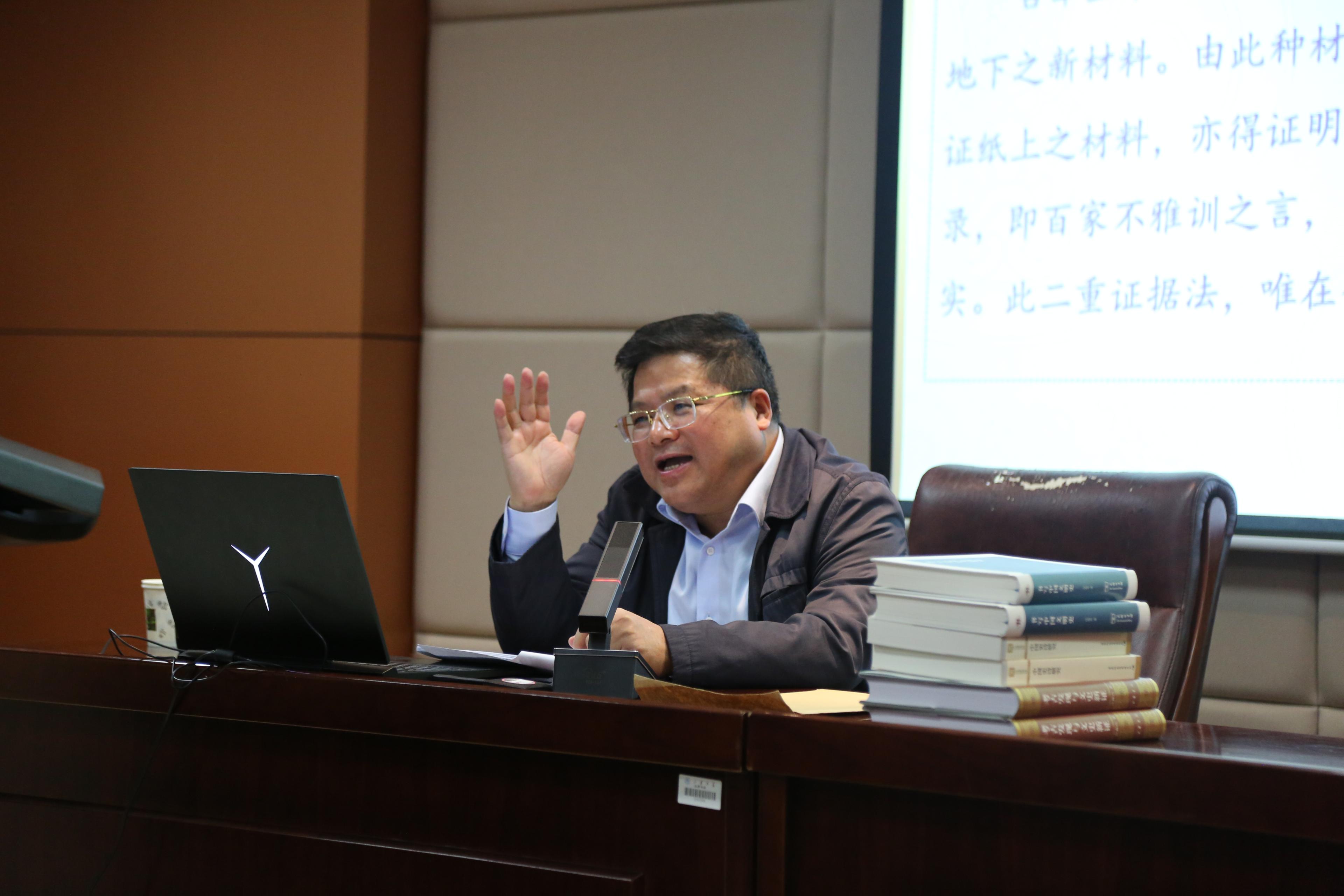 杜泽逊院长主持了此次讲座,他介绍江先生的治学特点是文史结合、经世致用,称赞江先生“上下古今,亦文亦史,融会贯通,游刃有余”,在潜心学术、立德树人诸方面成就卓著,并强调了解历史对于文学研究在方法和思路上具有重要价值。