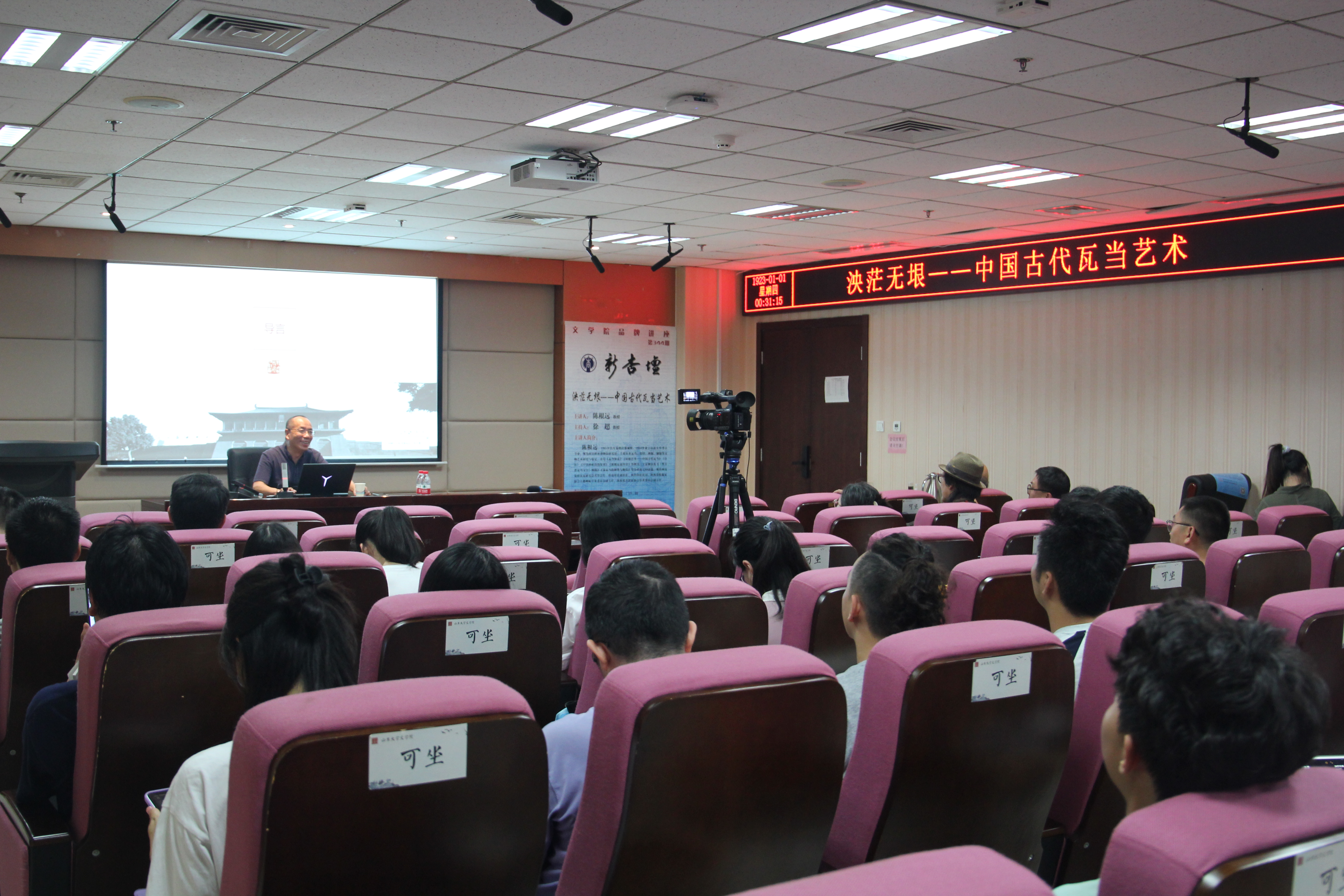 9月6日19时,西安碑林博物馆研究员、西安秦砖汉瓦研究会名誉会长陈根远做客第344期“新杏坛”,于知新楼A620室作题为“泱茫无垠——中国古代瓦当艺术”的学术讲座。讲座由山东大学书法研究中心主任徐超教授主持,吸引了近百位师生前来聆听。