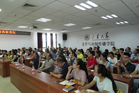 叶坦教授的讲座共分三部分。首先,在“好莱坞及其主流电影”这一部分中,叶坦教授从奥斯卡获奖影片出发,以格里菲斯《一个国家的诞生》和《中国的抗战》为例,讲解了好莱坞强大的文化包容性以及对中国文化的态度。同时,他介绍了美国电影审查制度的发展历程及电影分级制度的现状,并详细介绍了“从剧本到电影”的整个制作过程。随后,叶坦教授从类型片谈起,讲述“主流电影的形成与分野”。他旁征博引,以大量的好莱坞电影为基础,概述了西部片、歌舞片、科幻片、生活伦理片、黑帮片五种好莱坞电影最典型的类型片的基本特征,并以西部片为例介绍了类型片的重叠、发展、组合和变异,以“英雄崇拜”和“爱情”为例介绍了好莱坞影片的主流题材。最后,在讲到“主流电影编剧的具体要求”时,叶坦教授结合电影的基本要素,尤其从“角色”设置这一角度,详细介绍了优秀剧本的基本特征,并希望以后能看到山大学生创作的剧本登上好莱坞的舞台。