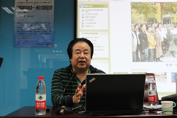 郑春首先代表学院欢迎校友们的到来,他一一介绍了在座校友的学习和工作情况,对他们长期以来对学院工作、尤其是对新闻教学及学生实习的大力支持和帮助表示诚挚的感谢。他特别指出,自1930年以来,有准确资料记载的近万名校友是我们学院得天独厚的宝贵财富。讲座开始,杨金月表达了回到母校的喜悦心情,感谢学院长期以来对自己的培养和关怀。作为《新闻联播》资深制片人,他回顾了《新闻联播》的成长历程,自1978年创立以来,伴随着中国社会的变化和进步,《新闻联播》怎样一步步成熟发展起来的;伴随着重大事件的出现,《新闻联播》的“金”标准又是怎么样最终确定下来的。结合三十多年来《新闻联播》的典型新闻事件,杨金月向同学们介绍了“金”标准的价值意义,他还具体介绍了“金”标准之下,《新闻联播》在内容安全、操作安全上的具体流程,解读了《新闻联播》在中国社会环境中的特殊地位。