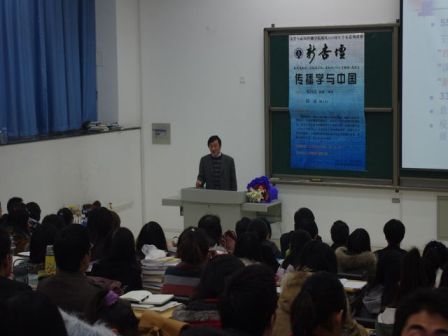 下午2时,张国良教授应邀做客“新杏坛”,在知新楼C501教室做了题为“传播学与中国”的讲座。他从对恩师王中(山大校友,新闻传播学的开拓者)的回忆入手,介绍了新闻传播学在中国的起步及发展概况。张教授认为传播学在中国近30年来发展迅速,进步很大,但在研究方法和研究视野上仍有很大空间。随后,他以新媒体在我国的发展态势为视角,指出传播学的研究领域应更加拓宽;尤其重点介绍了互联网引发中国社会发生的四大变化:媒体个人化、媒体全民化、虚拟真实化、社会网络化,并结合具体案例深入分析了互联网时代特征。最后,张国良教授呼吁传播学专业师生们应该肩负起时代责任:深入社会实践,关怀弱势群体,追求创新贡献,推动国家进步。张国良还与师生们进行了热烈的互动交流,就同学们提出的网络民意与现实民意、传统媒体的出路、媒体责任、传播学研究方法等问题表达了独到的见解和看法。