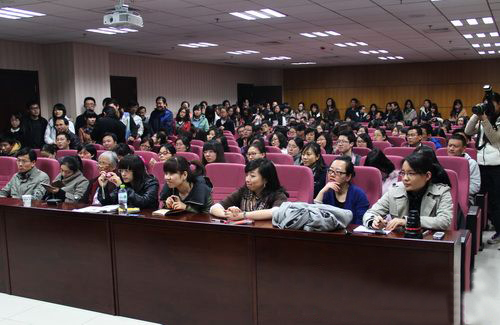 最后,曾经与莫言共同培养过硕士研究生的贺立华教授讲述了管氏兄弟与山大文学院的渊源历史,介绍了莫言获奖后的状况,并提到莫言今后的作品量还要翻番。管谟贤与现场的同学以及媒体记者进行了互动,就儒家文化对莫言的影响、作品中展现的思想性、莫言为人的血性和直爽、未来的写作计划以及前往瑞典领奖的准备等大家关注的问题进行了详细解答。来自全校各学院的师生及媒体记者约160人参加了此次活动,许多同学表示为管先生的魅力所折服,聆听讲座受益匪浅。