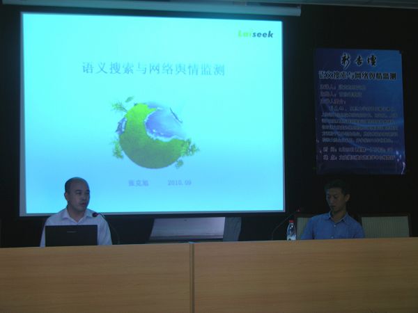 做了技术层面的阐释之后,张克旭研究员还举出了“中国国际舆情分析”、“上海世博会国际舆情分析”等具体的网络舆情监测案例,他的表述生动具体,深入浅出,使同学们对语义搜索与网络舆情监测有了一个更形象的了解。