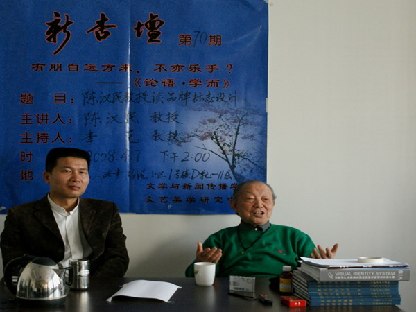 4月7日,文学与新闻传播学院第70期“新杏坛”在我校品牌与传播研究所举行。本期“新杏坛”邀请到了中国著名平面设计大师、清华美院陈汉民教授,讲座由品牌与传播研究所所长李克教授主持。山东建筑大学艺术学院陈华新院长,济南大学艺术学院设计系姬长武主任,山东工艺美术学院设计学院赵进院长、于伟正教授,山东轻工业学院艺术设计学院刘木森院长、李军老师,山东商学院山东大学机械学院工业设计系刘和山主任及新之航、三友传媒、睿奥广告等来自学界、业界的精英人士参加了座谈。我校文学院设计艺术学、广告学、新闻学等相关专业的本科生和研究生到场聆听了此次讲座。